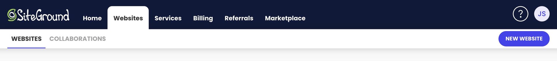 Dentro de la pestaña Websites, presionamos el botón NEW WEBSITE.