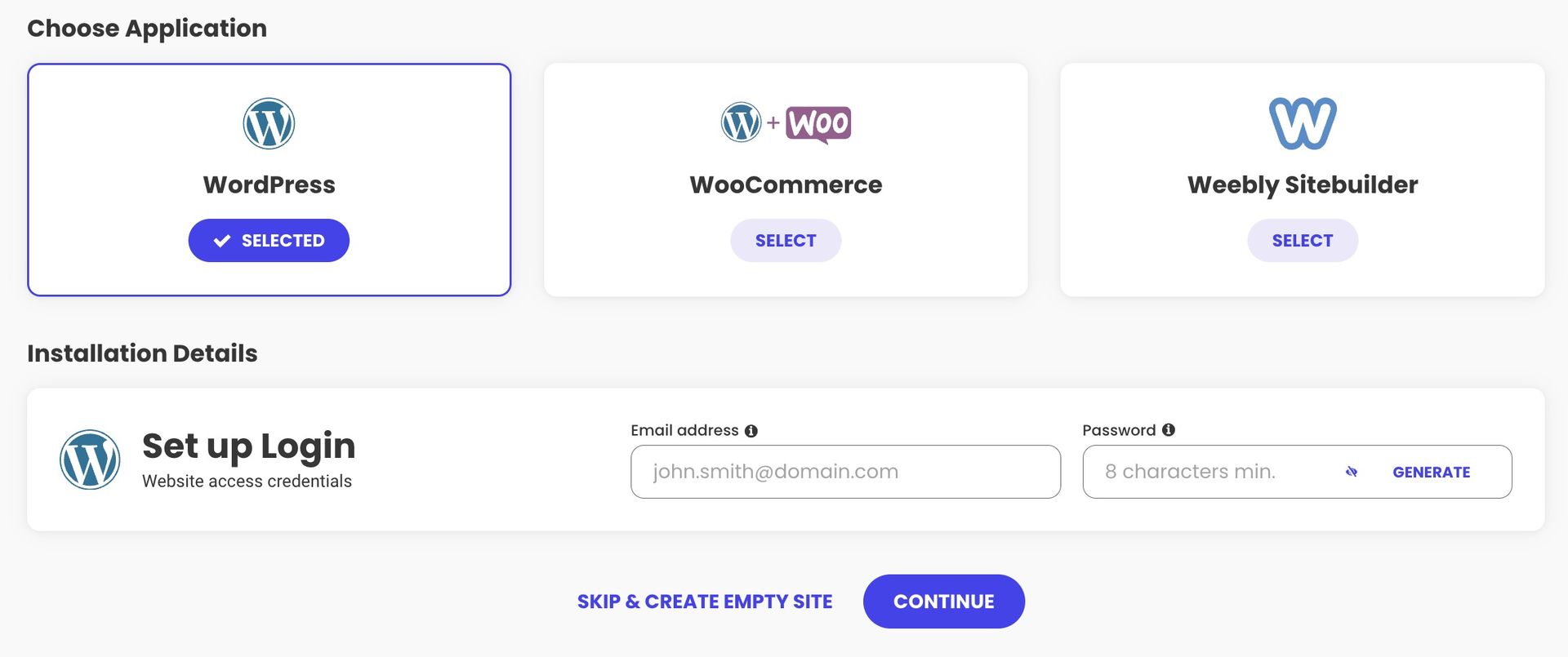 Con esto ya solo debemos darle a CONTINUE, y en 2 minutos el sitio web estará creado.